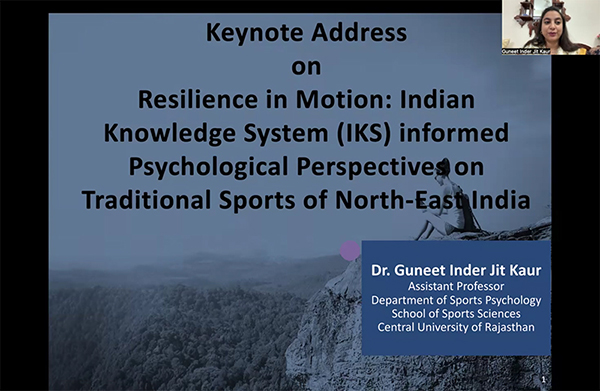 Asst. Prof. Guneet Inder Jit Kaur from Central University of Rajasthan, India, delivered a keynote speech on Resilience in Motion: Indian Knowledge System (IKS) Informed Psychological Perspectives on Traditional Sports of North-East India.